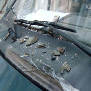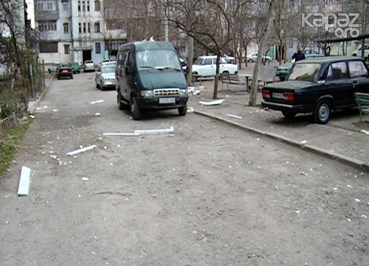 Partlayışın gücündən qopan ayna-qapı bina önündə dayanan avtomobillərə də ziyan vurub.