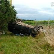 Samuxda idarəetməni itirən sürücü avtomobili aşırdı