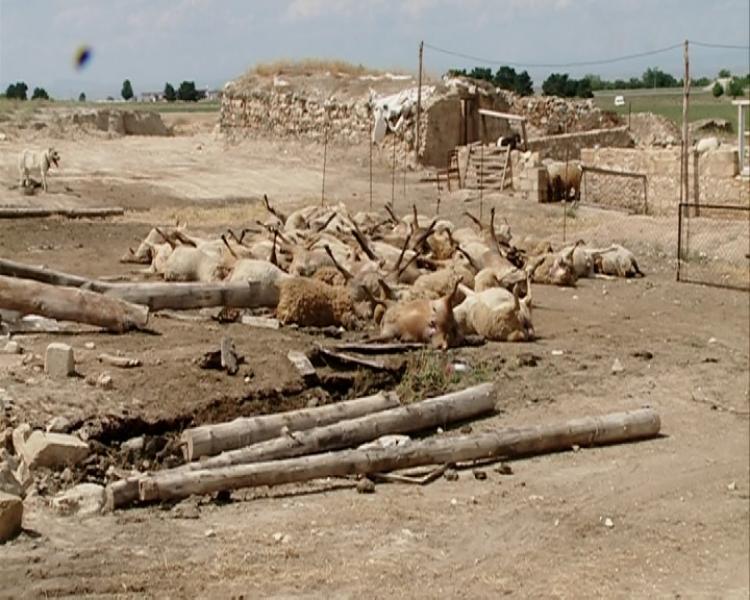 Arzu Məmmədov - təsərrüfat sahibi:“Qonşuların köməkliyi ilə biraz salamat çıxardıq. 137 başda tələf oldu. Təxminən 25 min manat ziyan dəyib təsərrüfata”