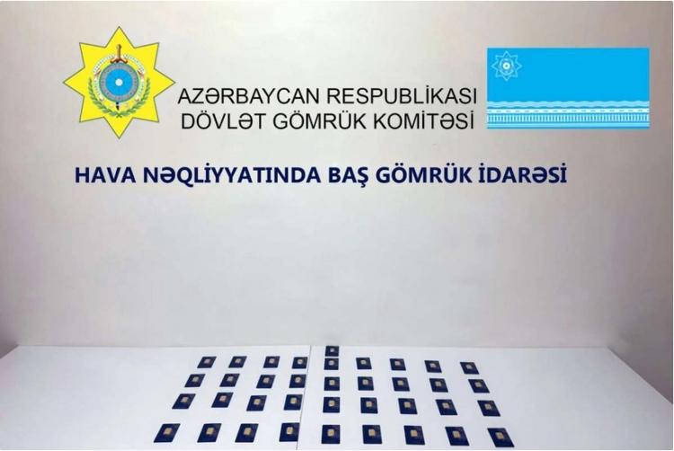 Hava Nəqliyyatında Baş Gömrük İdarəsinin keçirdiyi əməliyyatla Dubay-Bakı aviareysi ilə gələn Azərbaycan vətəndaşının əl yüklərinə baxış zamanı həmin şəxsin gödəkcəsində və əl çantasında gizlədilən 37 ədəd “Pamp” markalı, təqribi ümumi çəkisi 365 qram qızıl külçə aşkar edilib.