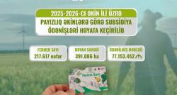 Aqrar Kredit və İnkişaf Agentliyi 2025–2026-cı əkin ili üzrə subsidiya ödənişlərinin ilkin mərhələsinə start verib. Kənd Təsərrüfatı Nazirliyi...