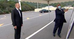 Prezident İlham Əliyev Şəki rayonuna səfər zamanı Qoxmuq-Baltalı-Babaratma-Qaradağlı-Qudula-Daşüz avtomobil yolunun yenidənqurmadan sonra açılışında...
