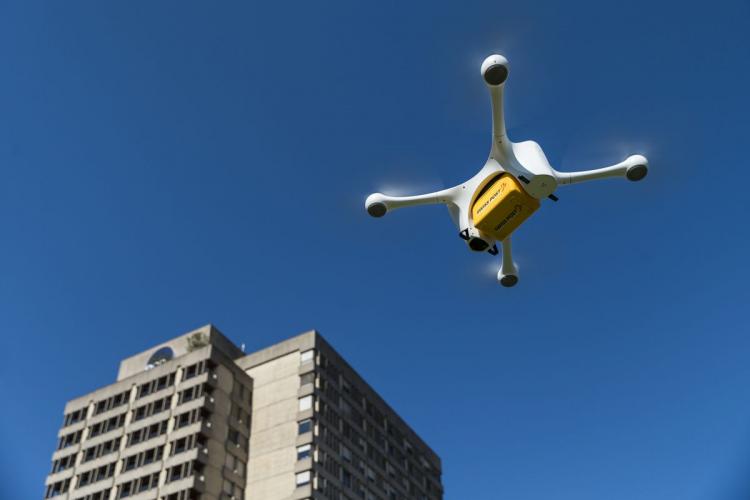 İsveçrənin Luqano şəhərinin iki xəstəxanası laboratoriya nümunələrini dronlar vasitəsilə mübadilə etməyə başlayıb. Sınaq sistemində operator qismində Swiss Post şirkəti çıxış edir. Testlər martın ortalarından start götürüb və bu günə qədər pilotsuz aparatlar xəstəxanalar arasında təxminən 70 uçuş həyata keçirib. Gələn ildən isə analoji sistemi mütəmadi işə salmağı planlaşdırırlar. Xəstəxana əməkdaşları uçan aparatın konteynerinə nümunələr yerləşdirəcək və mobil proqram vasitəsilə onu havaya qaldıracaq, əvvəlcədən təyin olunmuş uçuş isə avtonom rejimdə yerinə yetiriləcək. Dronlardan istifadə səhiyyə ocaqlarının yerüstü nəqliyyat vasitələrindən imtina etməsinə gətirib çıxaracaq ki, bu da mübadilə prosesini nəzərəçarpacaq dərəcədə sürətləndirəcək. Bu layihədə Swiss Post, Amerikanın Matternet kvadrokopterlərindən yararlanır. Onlar iki kiloqramadək yük götürmək qabiliyyətindədir. 20 kilometr isə qurğuların ən uzaq gedə biləcəyi məsafədir. Maksimal sürət saatda 36 kilometrdir. Qəzadan salamat çıxmaq üçün dronlara paraşütlər də quraşdırılıb.