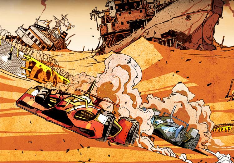 Ferrari şirkəti We Race adı altında onlayn-komikslər seriyası buraxıb. Artıq 4 seriya Ferrari saytında təqdim olunub. Komiksdəki hadisələr gələcəkdən xəbər verir. Guya dünyanı fəlakət bürüyür və daha sonra orada nələrin baş verdiyi göstərilir. Süjetə görə bir neçə kontinent suyun altında qalıb, bəzi yerlərdə isə suyun altından yeni dağ massivləri peyda olub. Fəlakətdən 100 il sonra insanlar dağılmış yerləri bərpa etməyə çalışırlar. Onlar dünyada tək hökmranlıq qururlar. Həmin ərəfələr isə avtosport da öz fəaliyyətini bərpa edir. Red Racing komandası və onun pilotu Lukas da bu yarışda iştirak edir. Onların rəqibi isə Stargazer komandası və pilot Cim Cager olur.