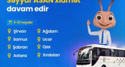 Noyabrın 3-dən 27-dək səyyar “ASAN xidmət” Şirvan, Samux, Şabran, Astara, Ağdam, Ucar, Qax və Xırdalanda fəaliyyət göstərəcək. Xidmətin məqsədi...