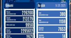 Azərbaycanda koronavirus infeksiyasına 380 yeni yoluxma faktı qeydə alınıb, 1159 nəfər müalicə olunaraq sağalıb.COVID-19 üçün götürülən analiz...
