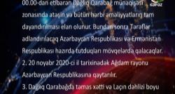 "Bu gün ölkəmiz üçün tarixi bir gündür. Bu gün Ermənistan-Azərbaycan Dağlıq Qarabağ münaqişəsinə son qoyulur". Bizim illərdir gözlədiyimiz, illərdir...
