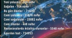 Azərbaycanda koronavirus infeksiyasına 318 yeni yoluxma faktı qeydə alınıb, 714 nəfər müalicə olunaraq sağalıb və evə buraxılıb. Nazirlər Kabineti...